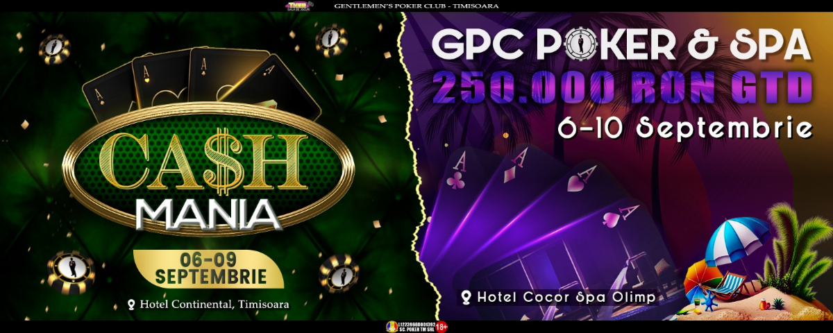 In acelasi timp, in statiunea Olimp de pe malul Marii Negre se desfasoara Festivalul de Turnee Poker&SPA, Main Eventul avand un fond garantat de premiere de 250.000 lei. Acesta a debutat miercuri 06 septembrie si se va incheia duminica 10 septembrie, iar toate detaliile le puteti gasi pe LETS Poker :