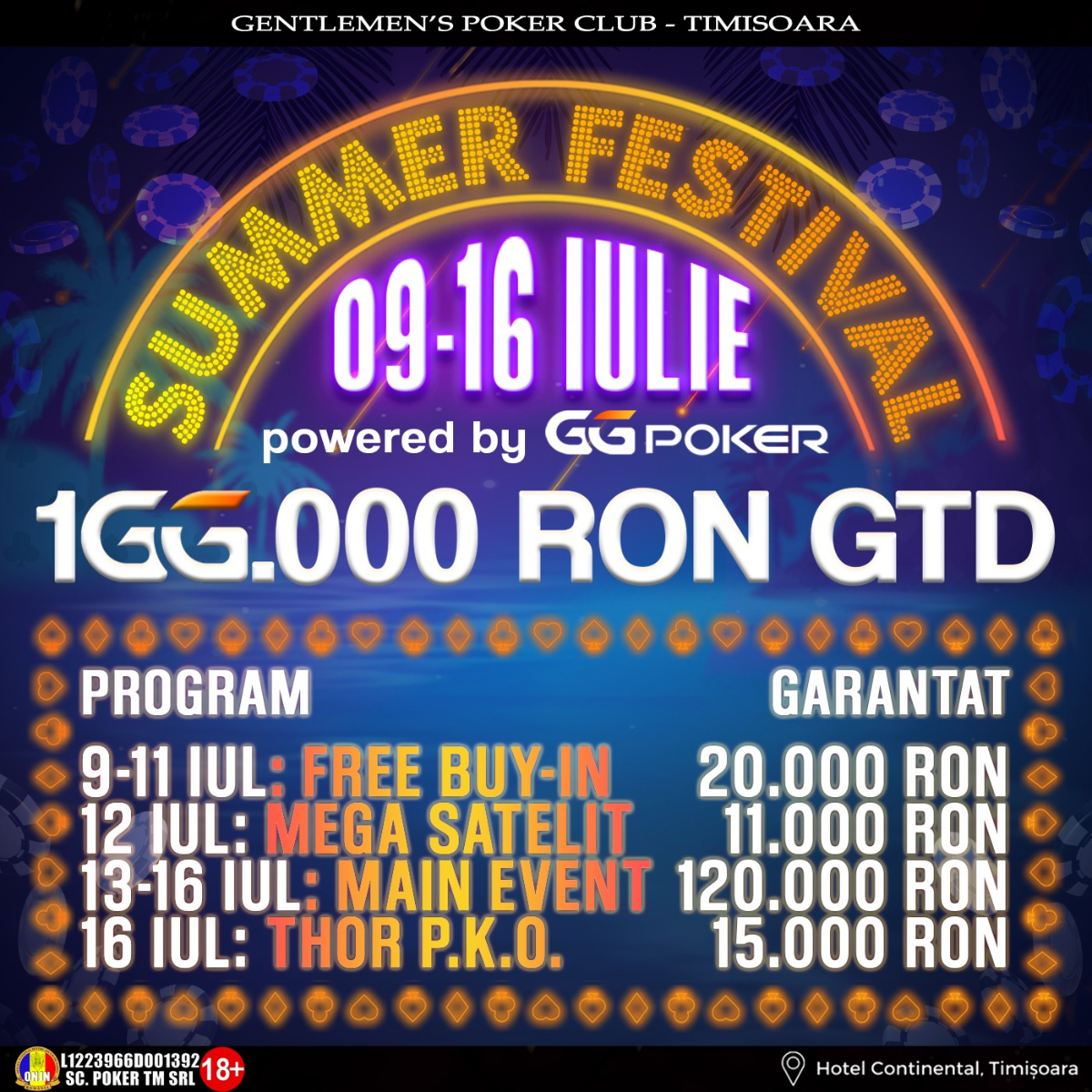 Summer Festival powered by GG Poker este primul festival care marchează începutul colaborării dintre Gentlemen's Poker Club Timișoara și PlayGG.ro